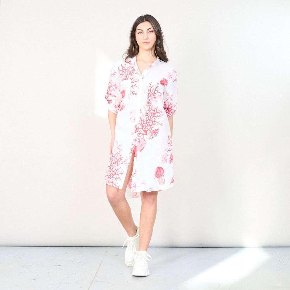 Sea Coral print long shirt dress